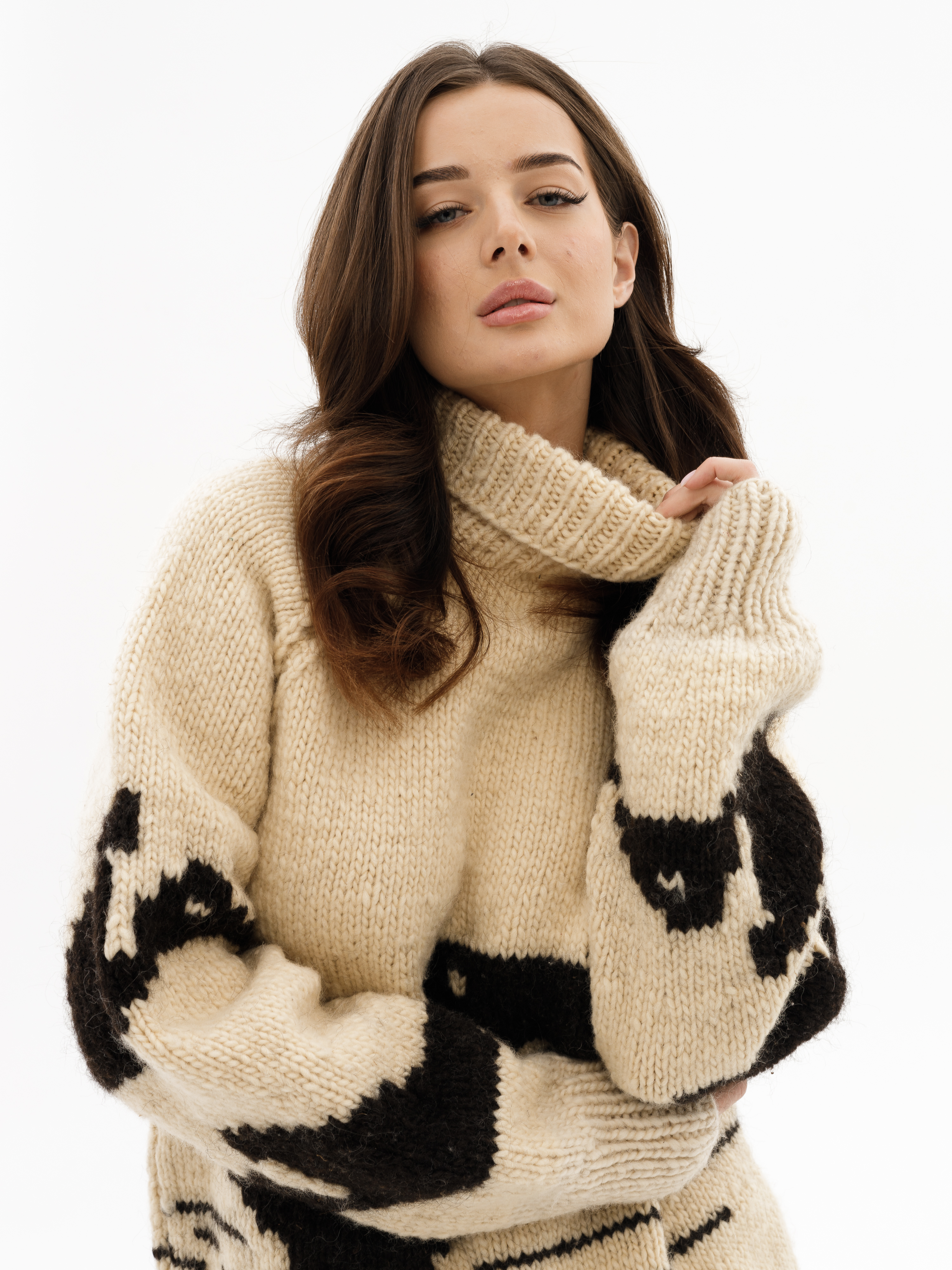 Cream wool · black pattern